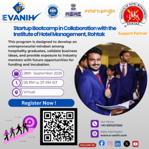 We are excited to invite you to a power-packed Entrepreneurship Workshop & Panel Discussion on Campus2Startup, hosted by EVANIH at the prestigious India International Hospitality Expo (IHE) 2025.