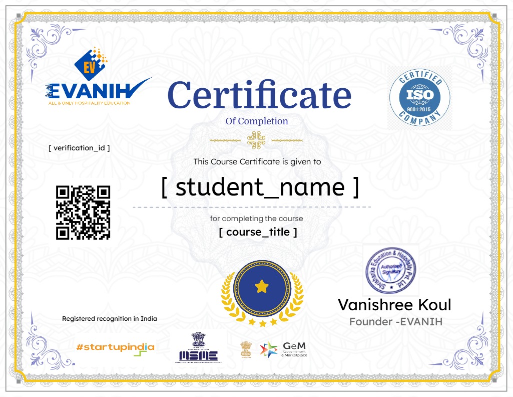 “Hospitality education develops strong foundations, practical skills, and career readiness. EVANIH’s e-learning approach offers flexibility, industry relevance, and skill development. It prepares students for varied hospitality roles by focusing on client management, communication, and operational excellence in a competitive global environment.”